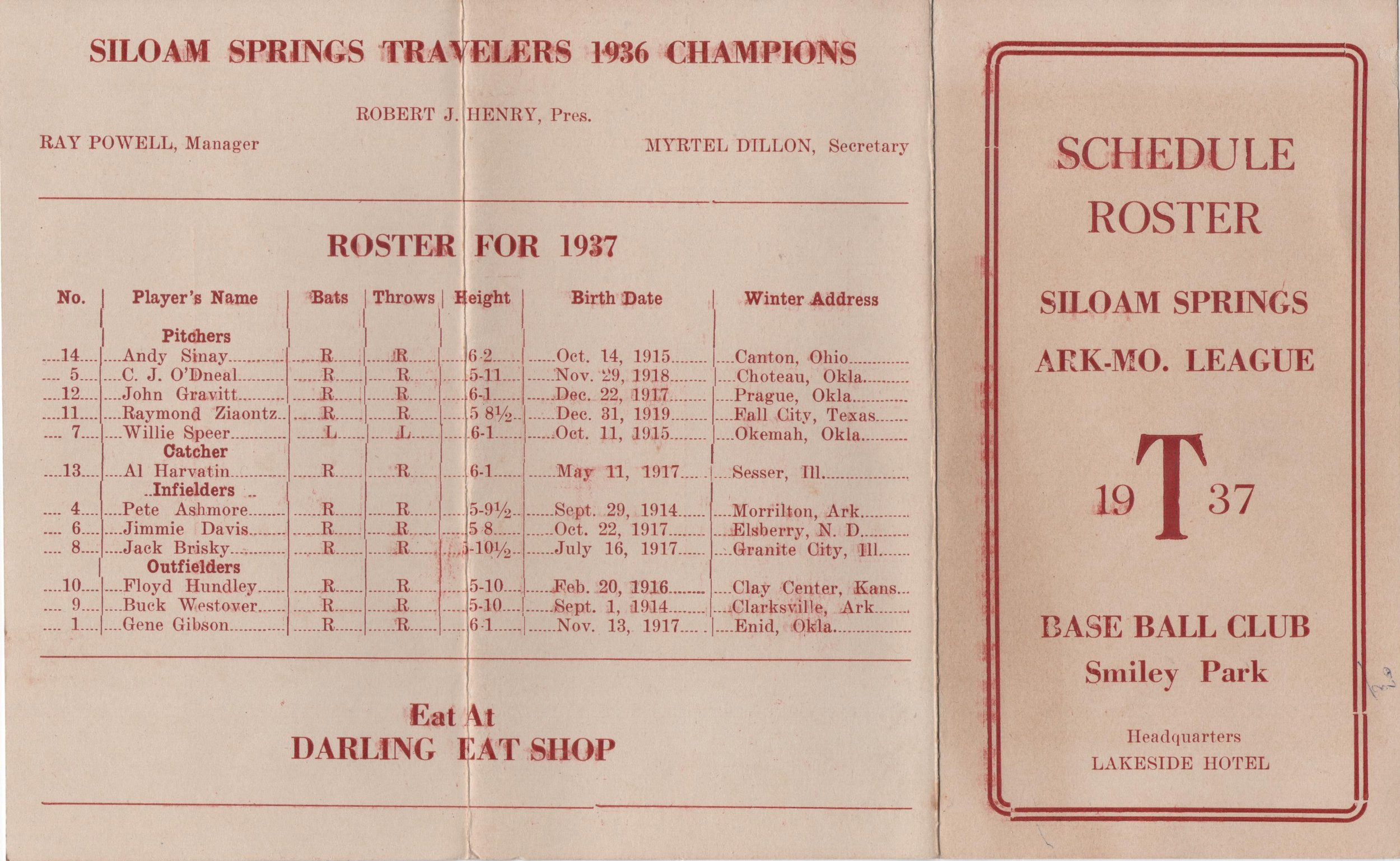 Each summer from 1935 to 1938 Siloam Springs had a semi-professional baseball team called the Siloam Springs Travelers.